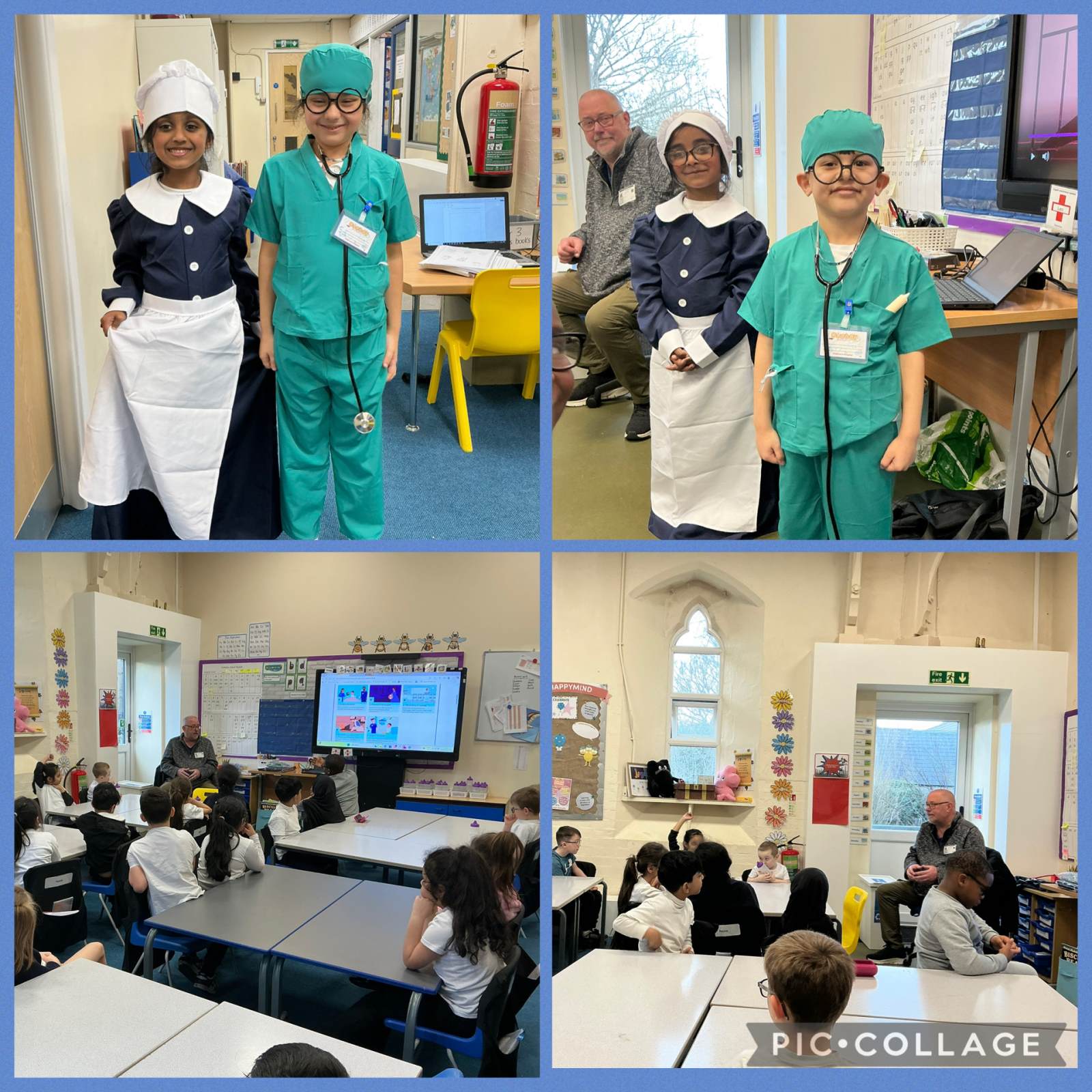 Class 2 had a visitor today from the hospital and he told us all about how hospitals and nursing has changed over the last 200 years. Thank you Mr McEntee.
